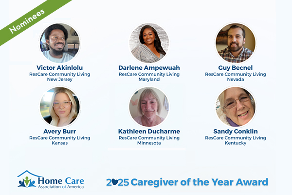 The Home Care Association of America (HCAOA) announced their top nominees for the 2025 Caregiver of the Year Award, including six ResCare Community Living employees.